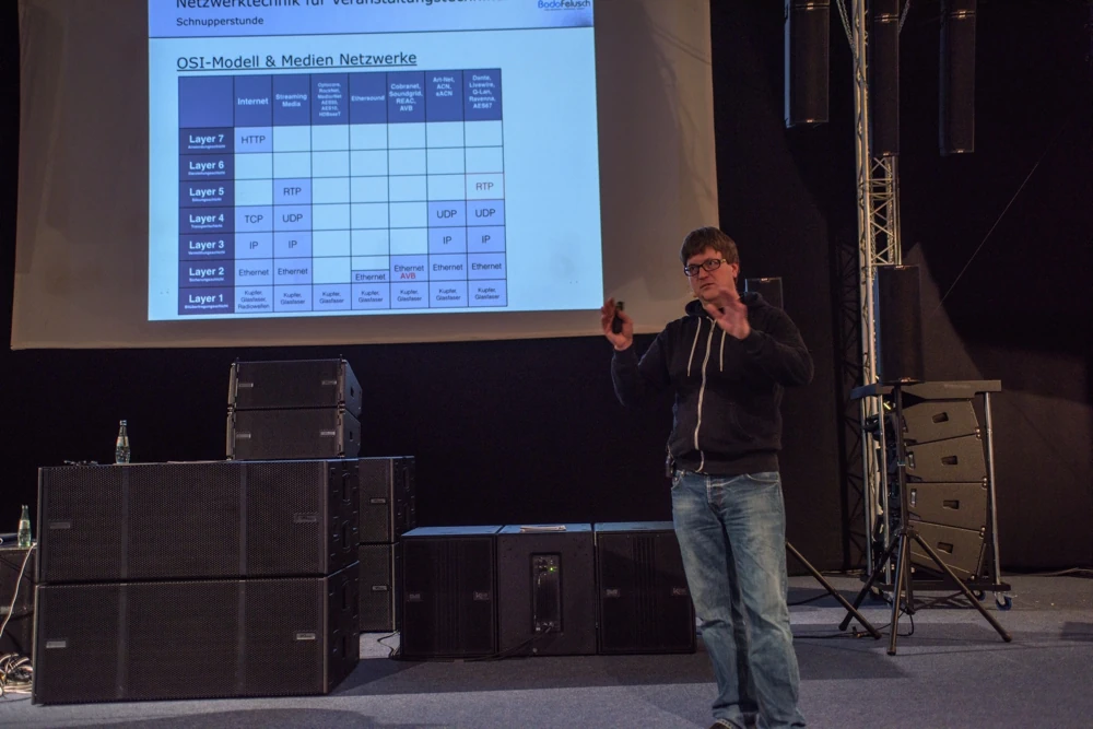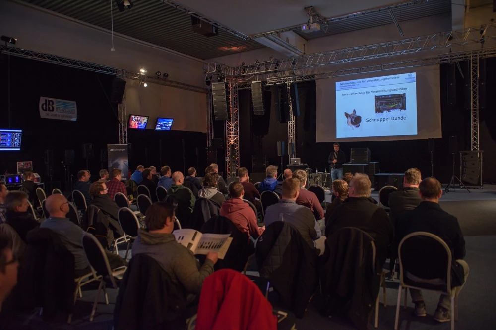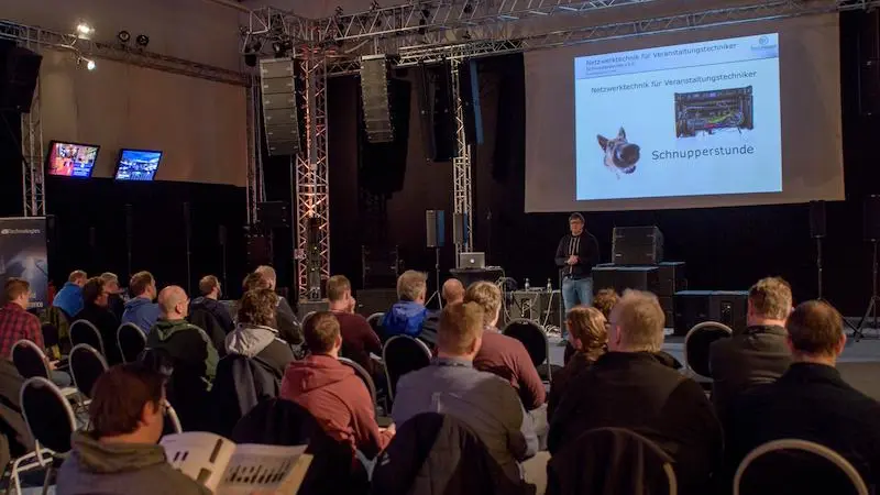 Der Fachvortrag zum Thema Netzwerke in der Veranstaltungstechnik kann in einem ein- oder zweistündigen Zeitslot präsentiert werden. Ziel ist ein umfassender Überblick zu den Möglichkeiten, Signale in Veranstaltungsumgebungen mittels IT-Technik zu transportieren. Der Fokus liegt auf dem „Was ist möglich“, während die dreitägigen Seminare das „Wie macht man das“ beleuchten.